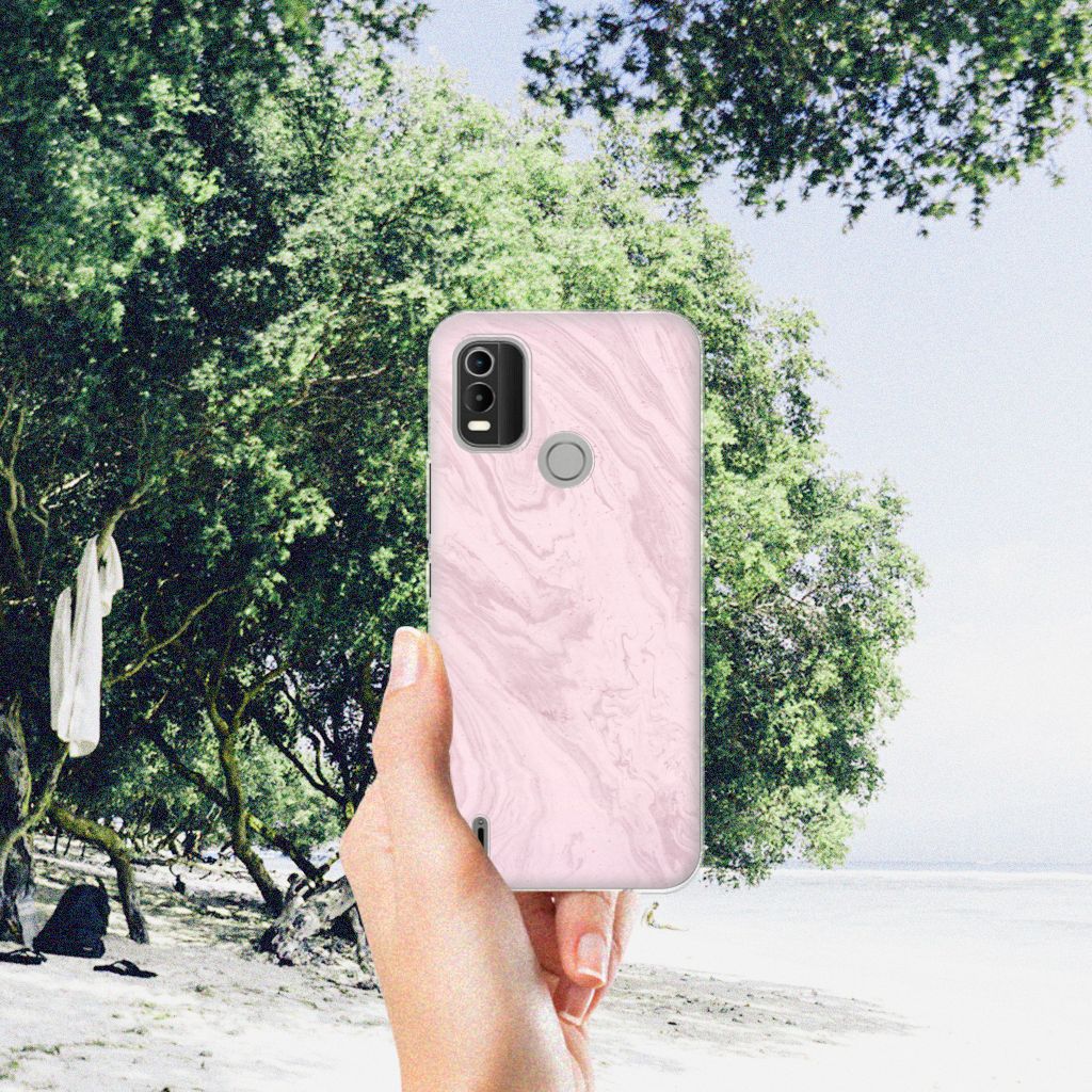 Nokia C21 Plus TPU Siliconen Hoesje Marble Pink - Origineel Cadeau Vriendin