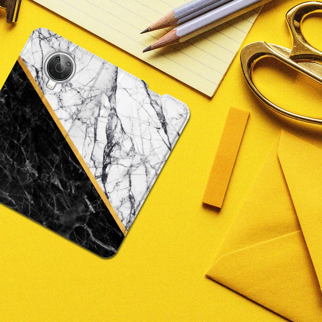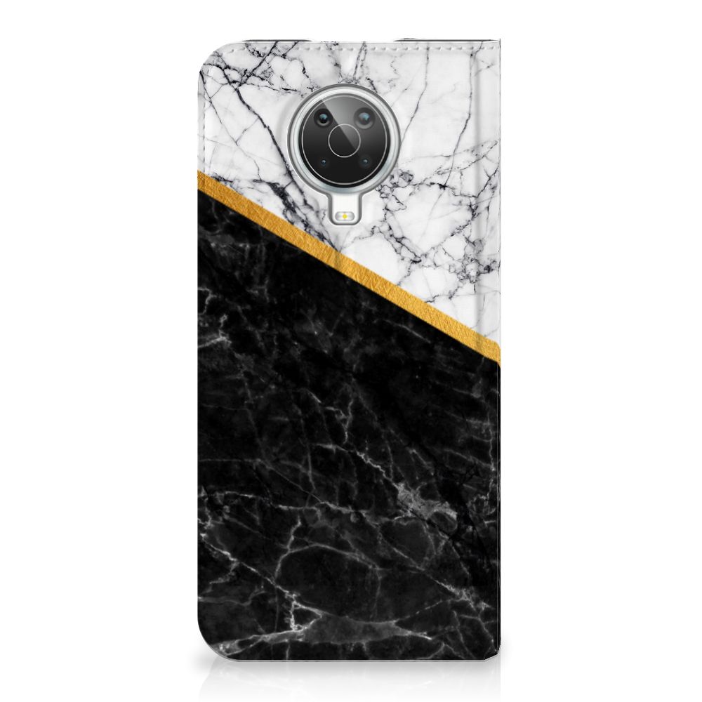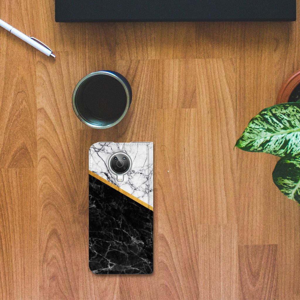 Nokia G10 | G20 Standcase Marmer Wit Zwart - Origineel Cadeau Man