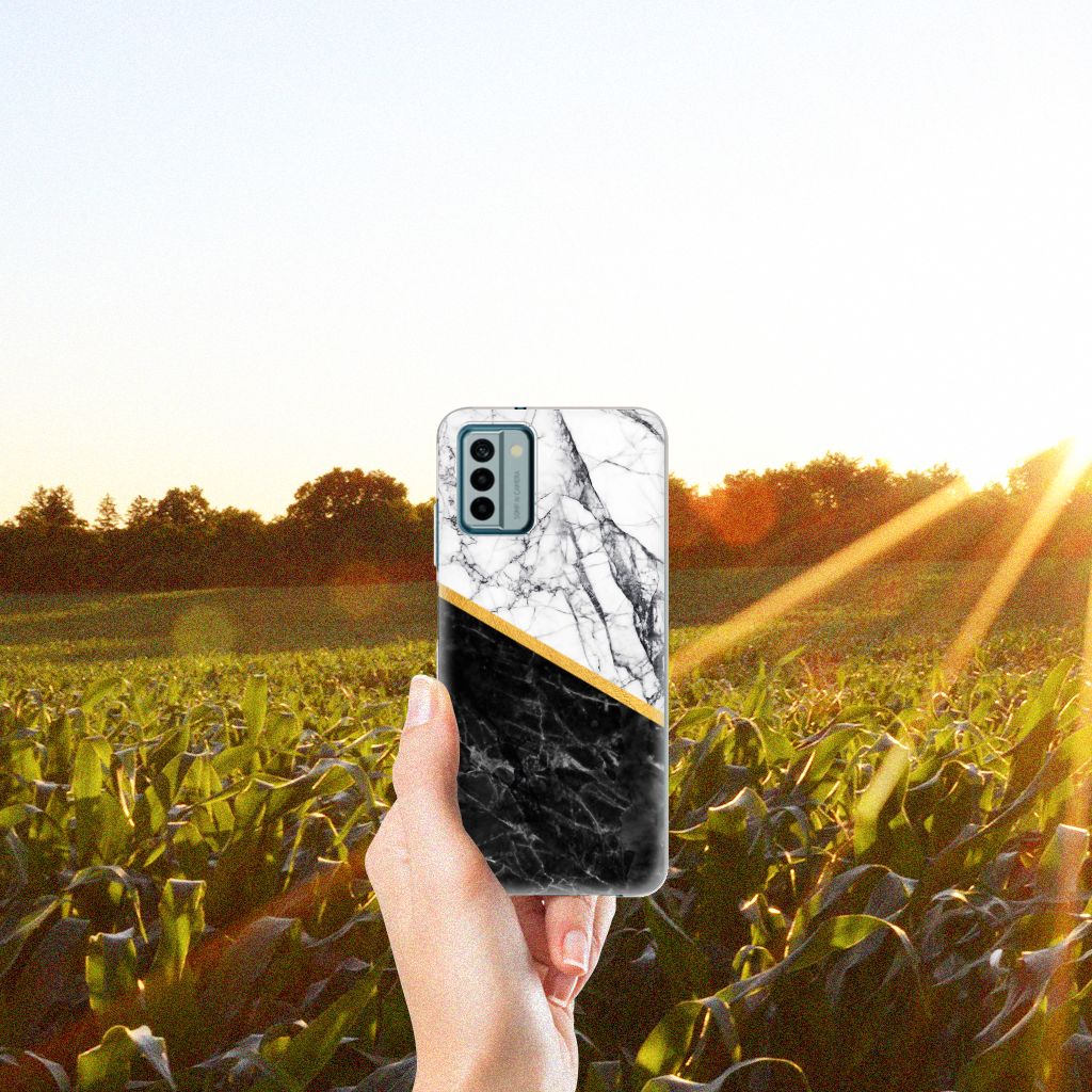 Nokia G22 TPU Siliconen Hoesje Marmer Wit Zwart - Origineel Cadeau Man