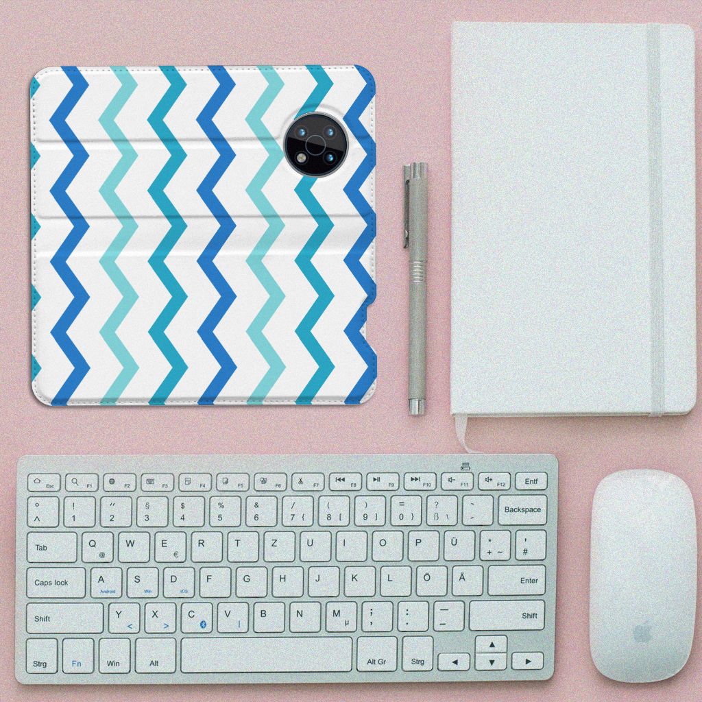 Nokia G50 Hoesje met Magneet Zigzag Blauw