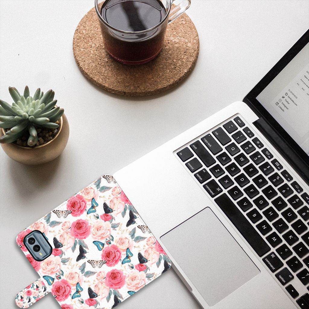 11% OFFNokia X30 Hoesje Butterfly Roses