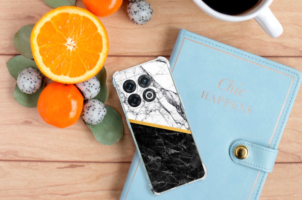 OnePlus 10 Pro Anti-Shock Hoesje Marmer Wit Zwart - Origineel Cadeau Man