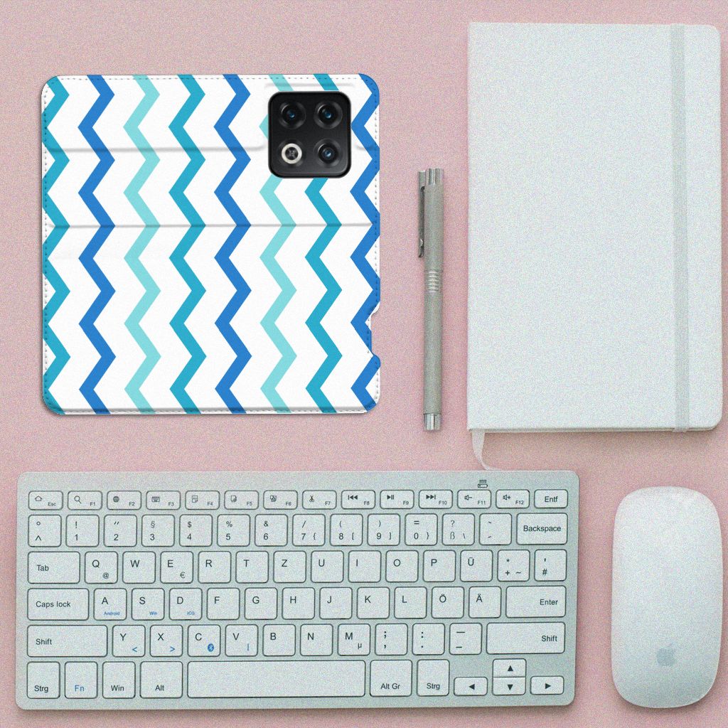 OnePlus 10 Pro Hoesje met Magneet Zigzag Blauw
