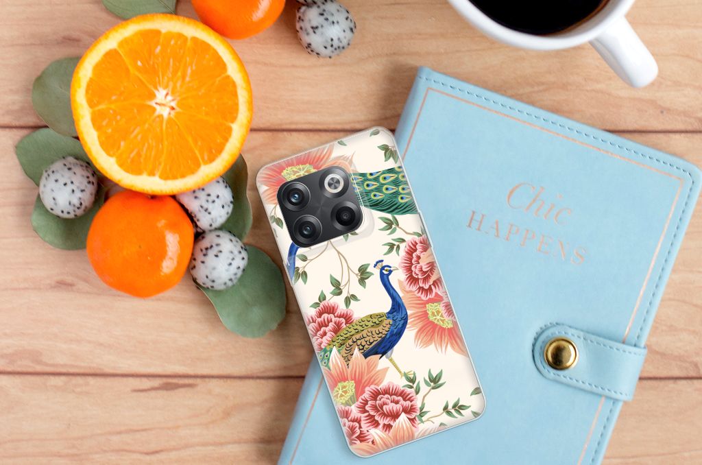 OnePlus 10T TPU Hoesje Pauw met Bloemen