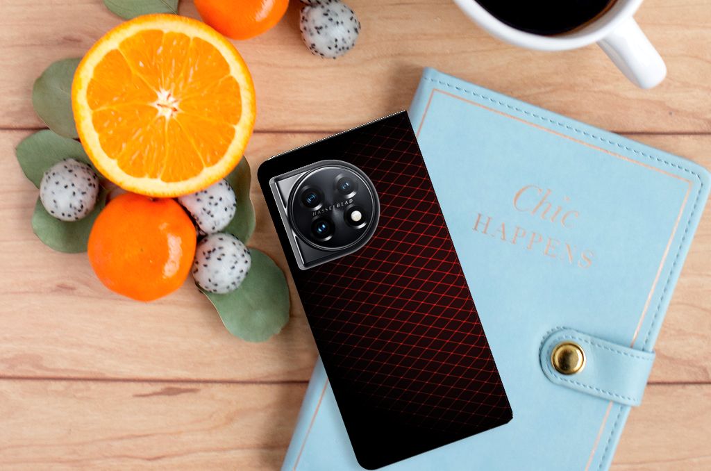 OnePlus 11 Hoesje met Magneet Geruit Rood