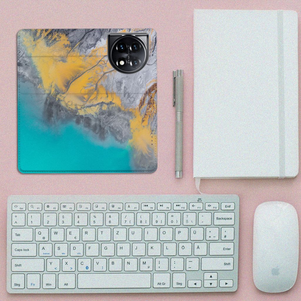 OnePlus 11 Standcase Marble Blue Gold