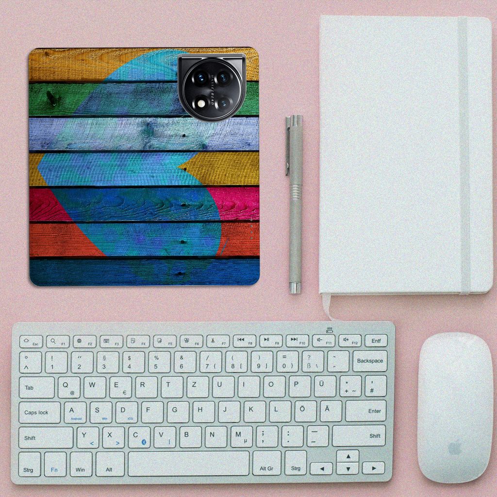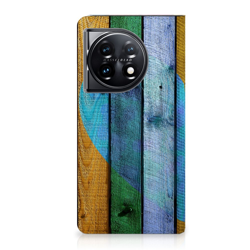 OnePlus 11 Book Wallet Case Wood Heart - Cadeau voor je Vriend