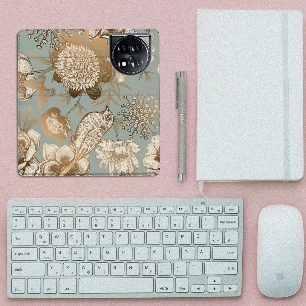 Smart Cover voor OnePlus 11 Vintage Bird Flowers
