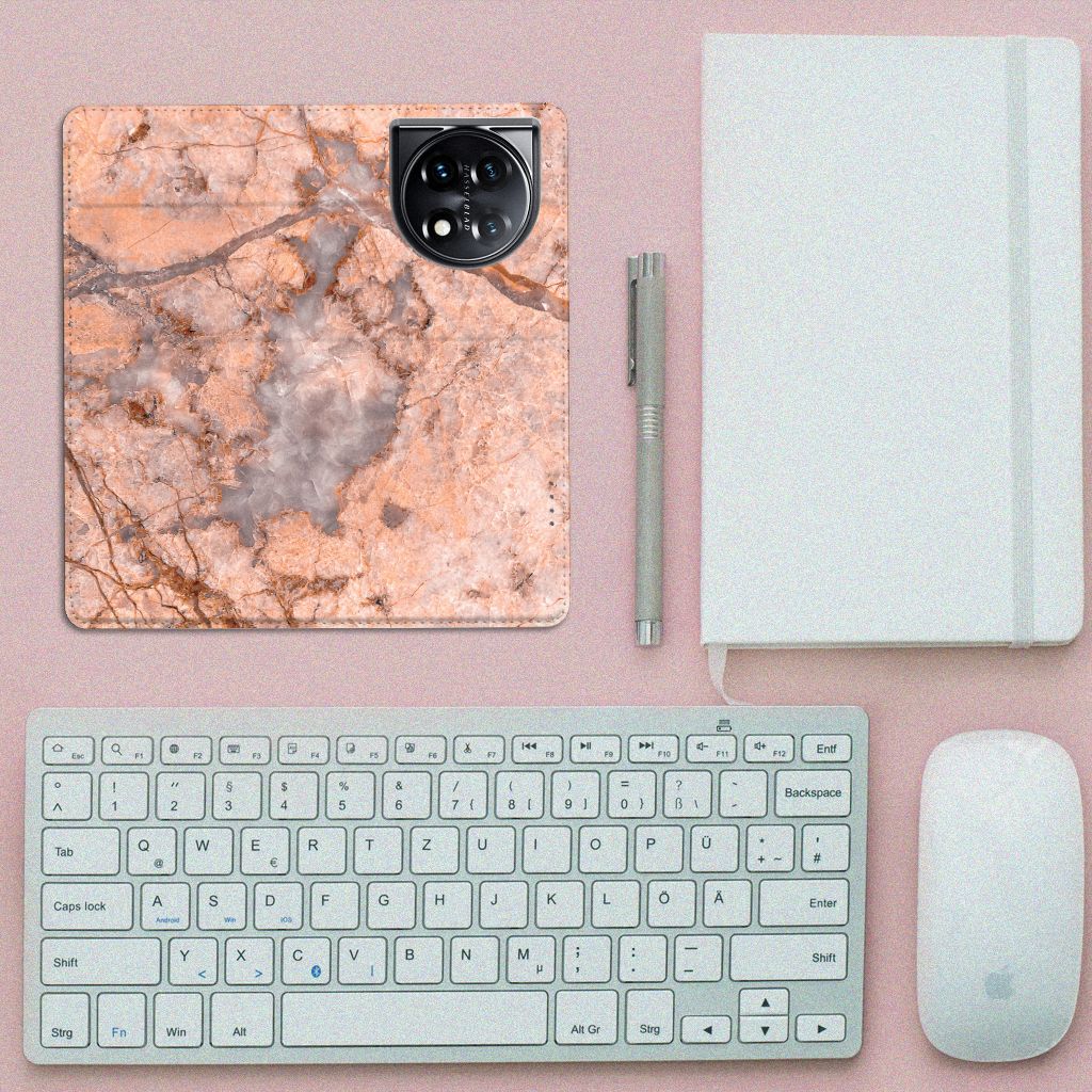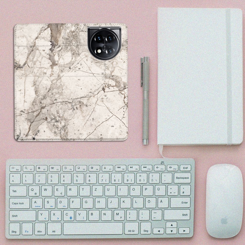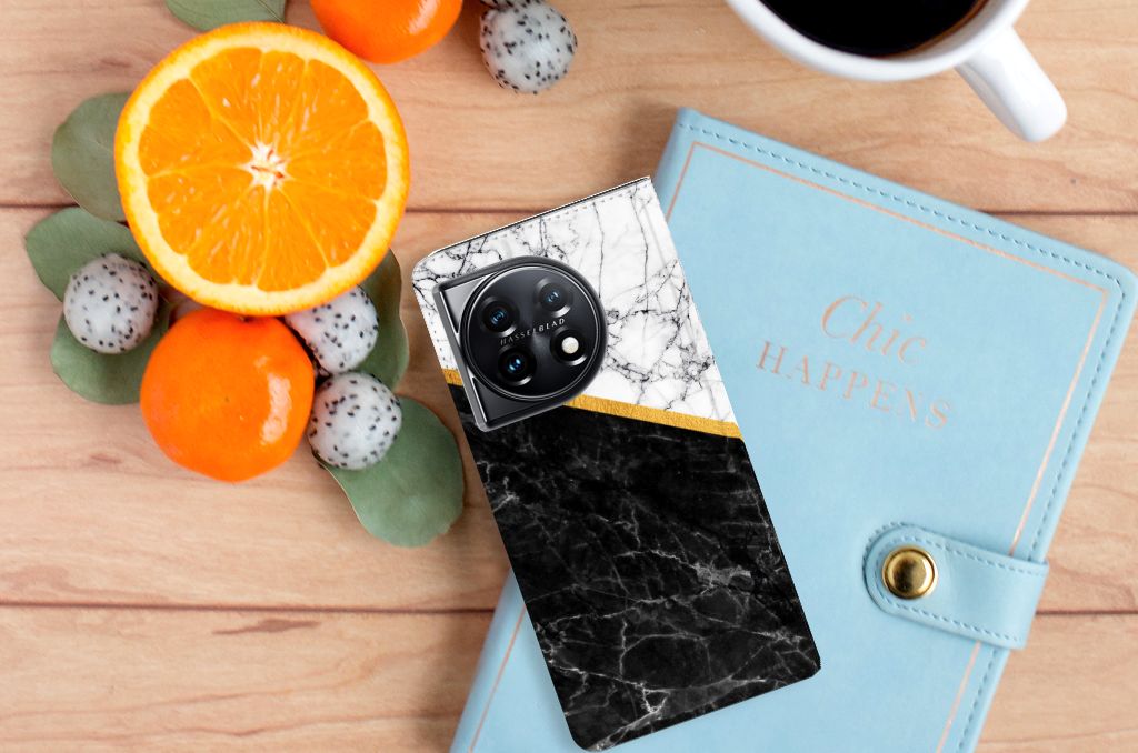 OnePlus 11 Standcase Marmer Wit Zwart - Origineel Cadeau Man
