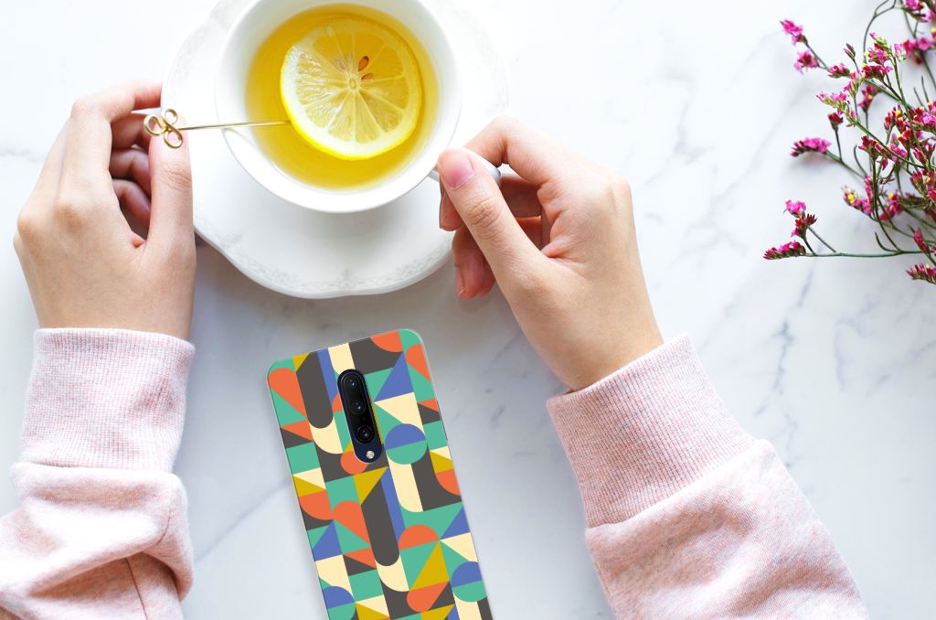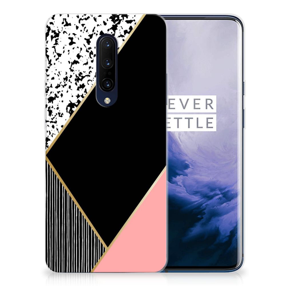 OnePlus 7 Pro TPU Hoesje Zwart Roze Vormen