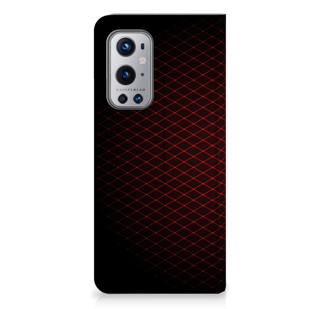 OnePlus 9 Pro Hoesje met Magneet Geruit Rood