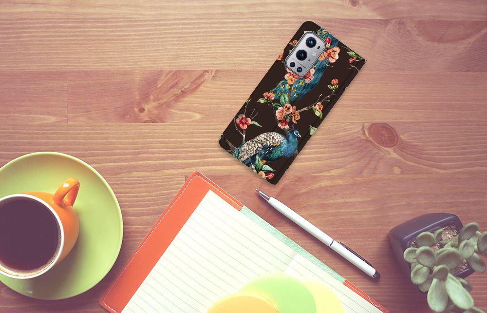 OnePlus 9 Pro Hoesje maken Pauw met Bloemen