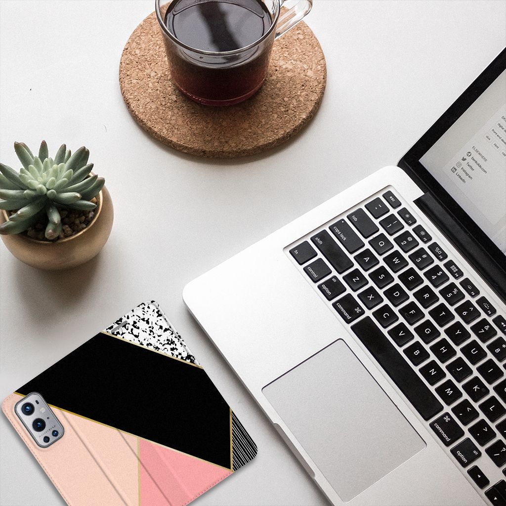 OnePlus 9 Pro Stand Case Zwart Roze Vormen