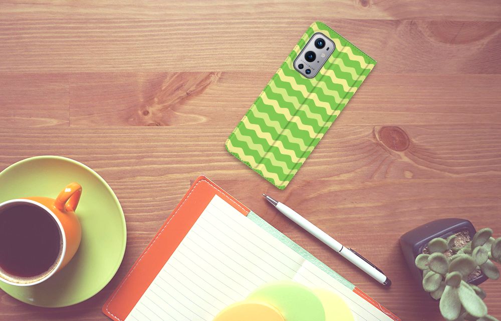OnePlus 9 Pro Hoesje met Magneet Waves Green