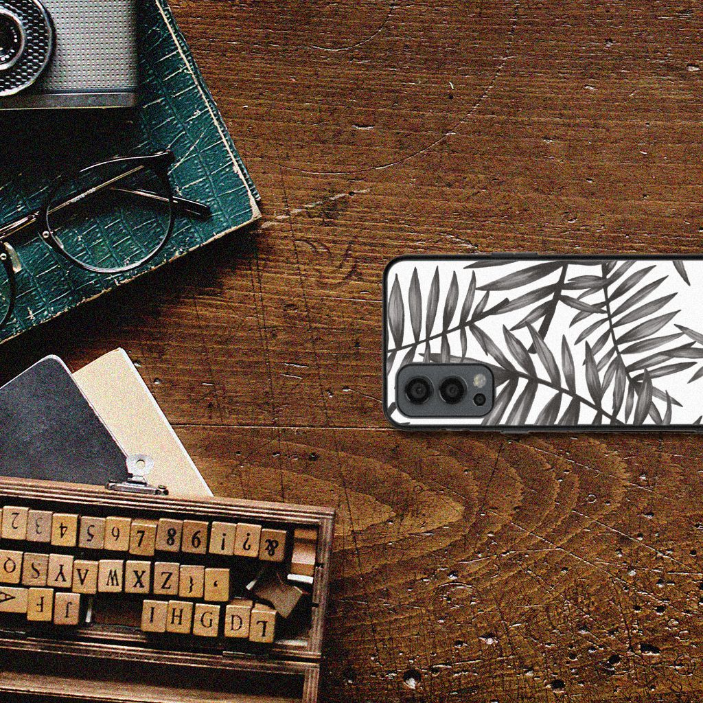 OnePlus Nord 2 Bloemen Hoesje Leaves Grey