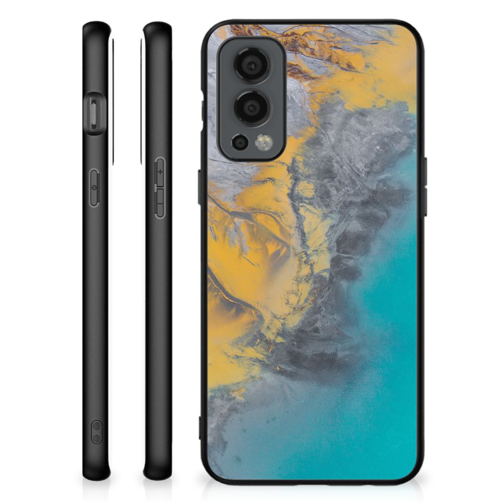 OnePlus Nord 2 Marmeren Print Telefoonhoesje Marble Blue Gold