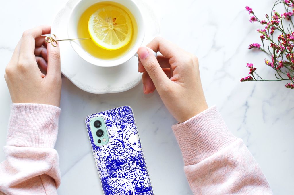 Silicone Back Case OnePlus Nord 2 5G Angel Skull Blauw