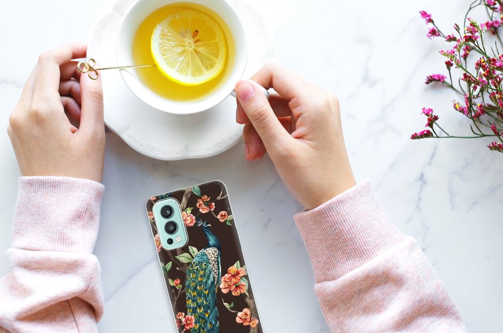 OnePlus Nord 2 5G TPU Hoesje Pauw met Bloemen