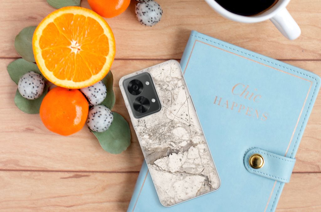 OnePlus Nord 2T TPU Siliconen Hoesje Marmer Beige