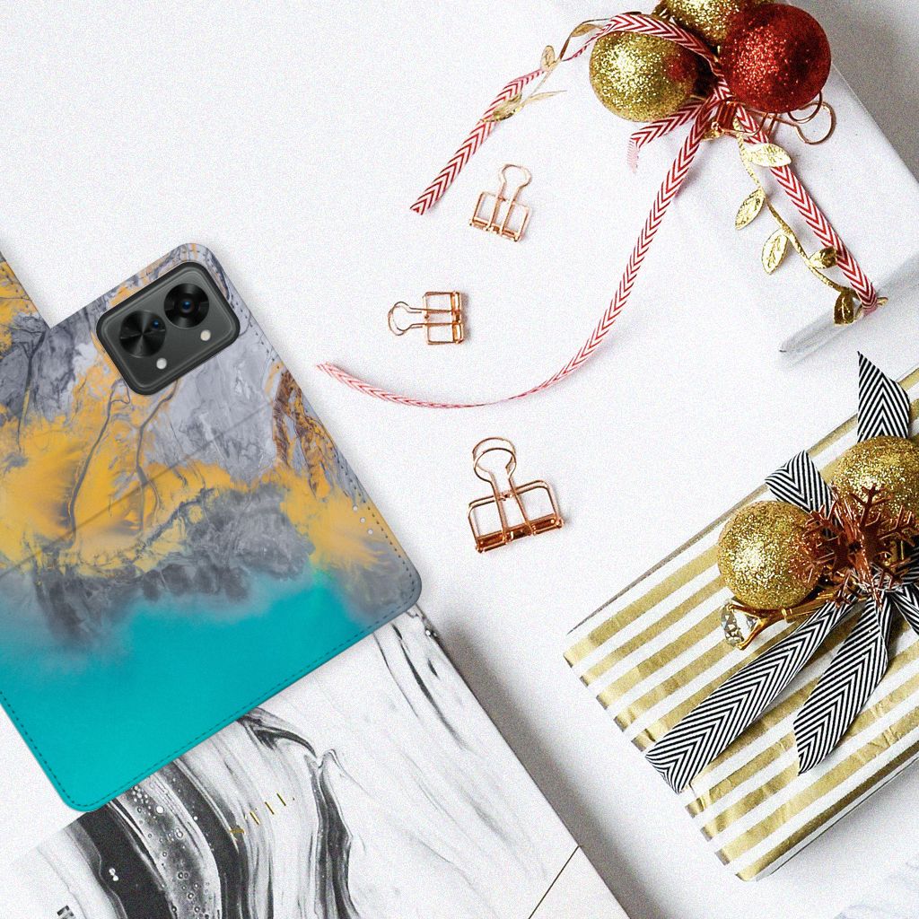 OnePlus Nord 2T Bookcase Marble Blue Gold