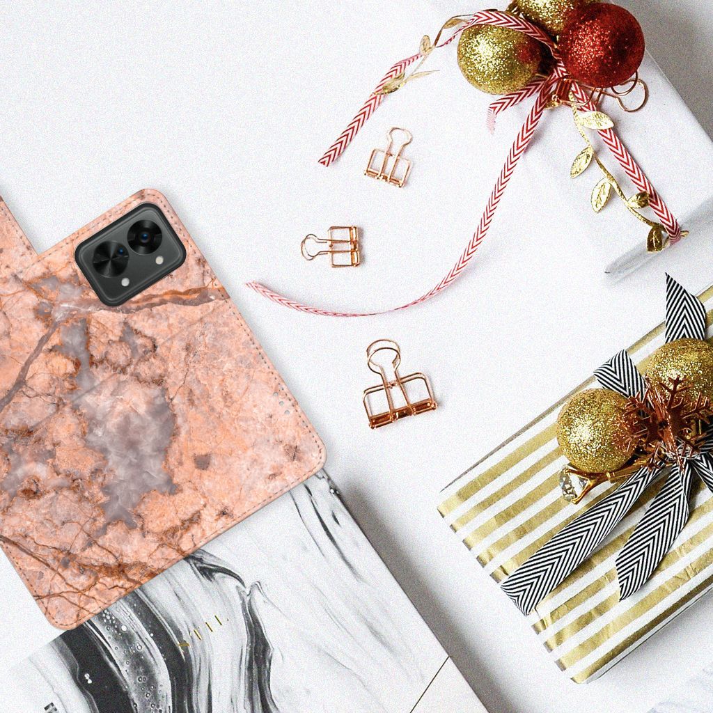 OnePlus Nord 2T Bookcase Marmer Oranje