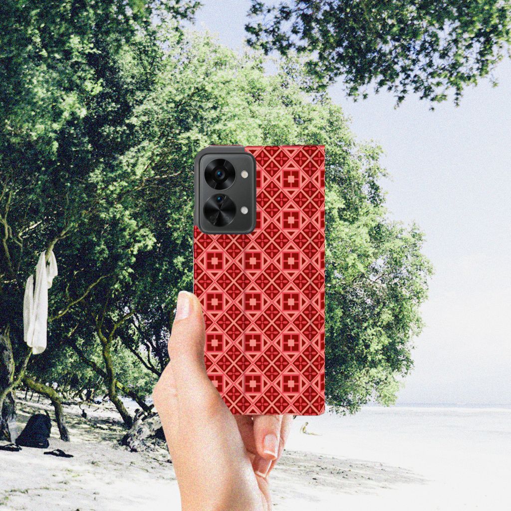 OnePlus Nord 2T Hoesje met Magneet Batik Rood