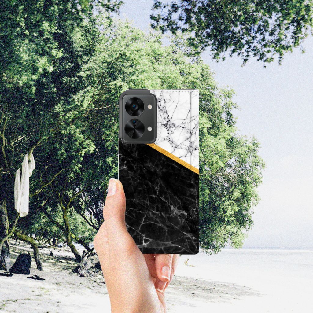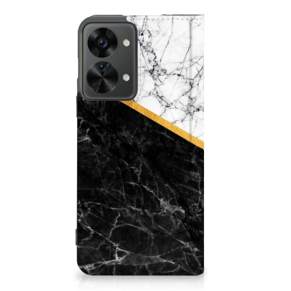 OnePlus Nord 2T Standcase Marmer Wit Zwart - Origineel Cadeau Man