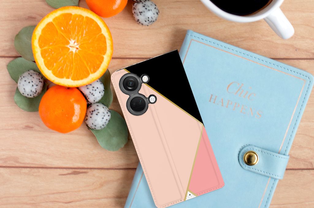 OnePlus Nord 3 Stand Case Zwart Roze Vormen