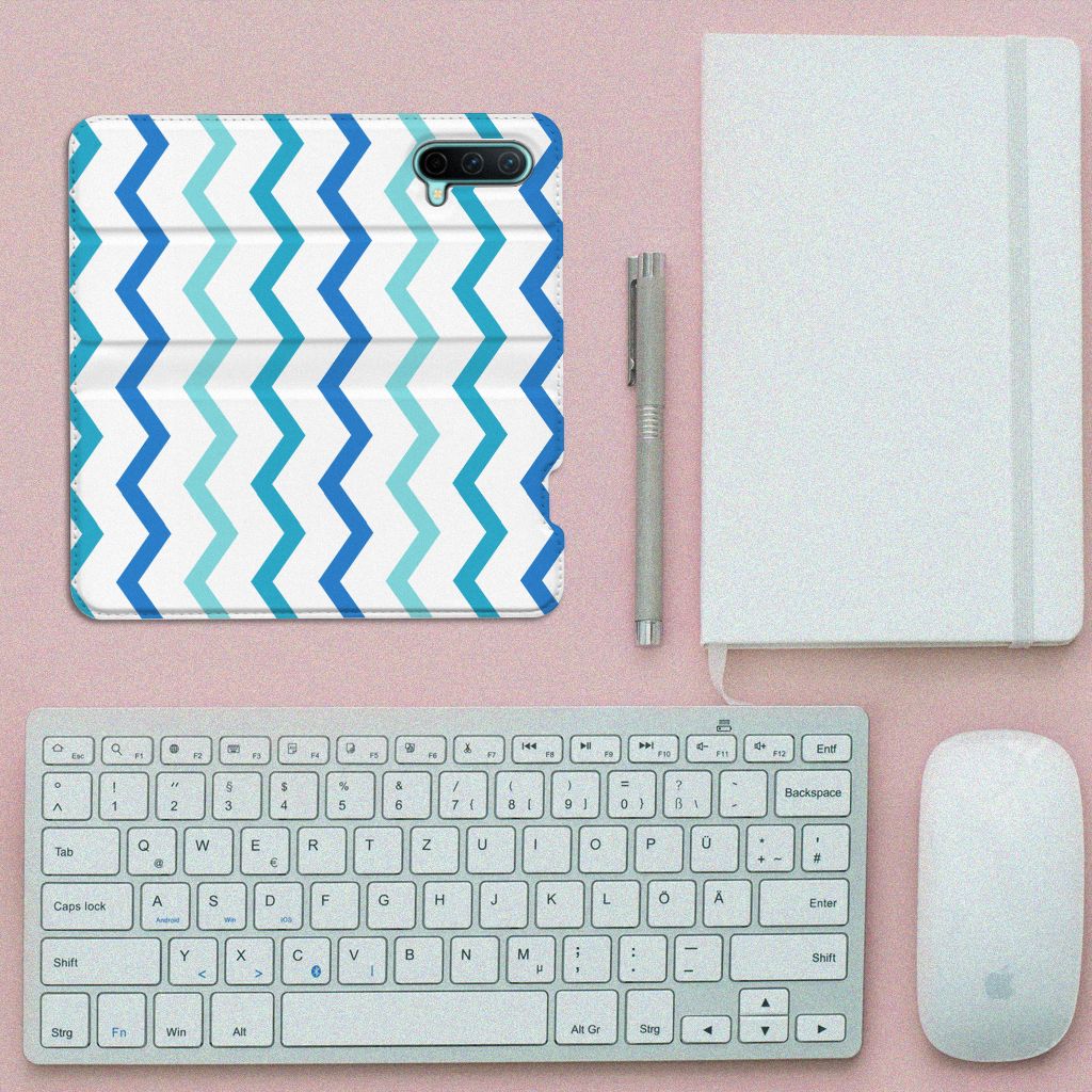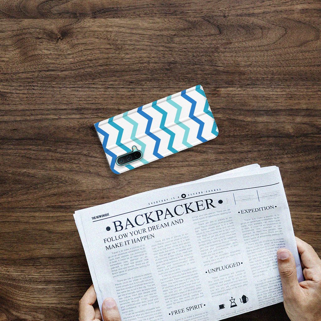 OnePlus Nord CE 5G Hoesje met Magneet Zigzag Blauw