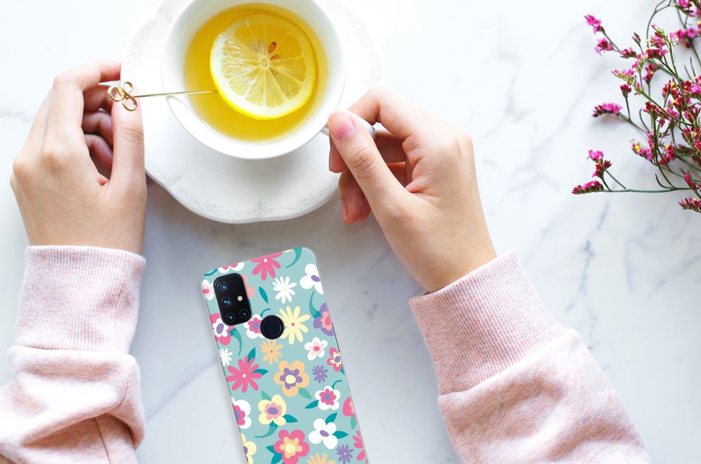 OnePlus Nord N10 5G TPU Hoesje Pauw met Bloemen