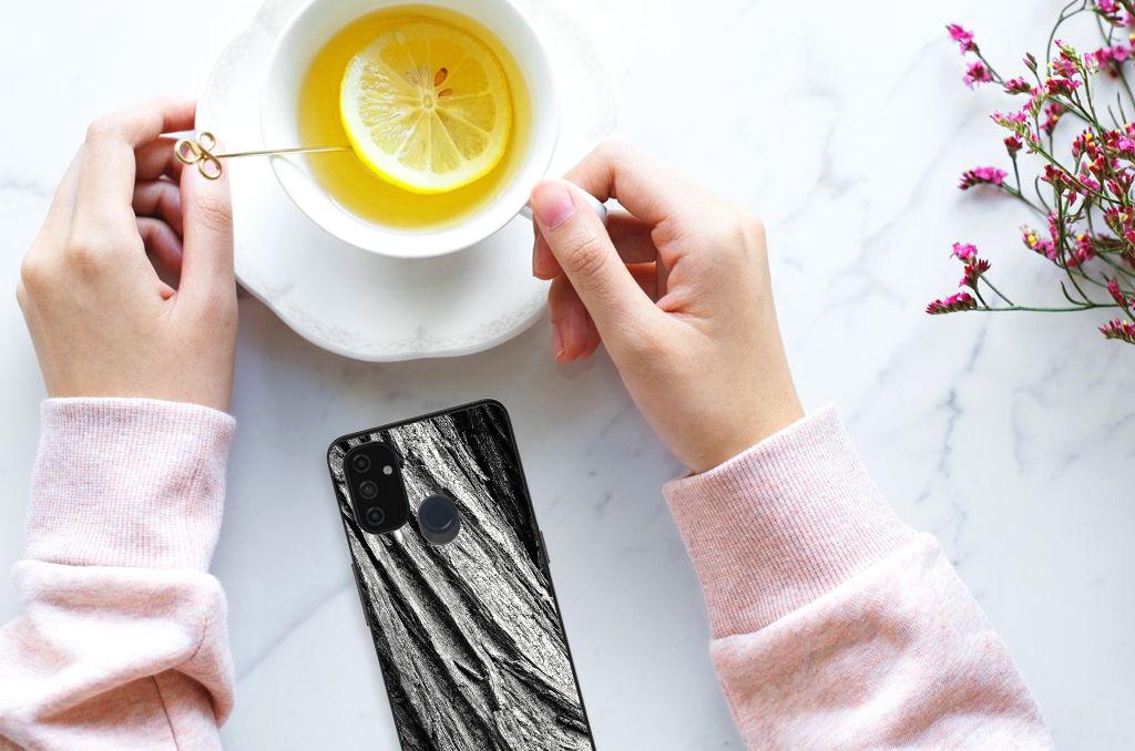Houten Print Telefoonhoesje OnePlus Nord N100 Boomschors Grijs
