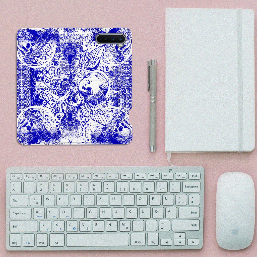 Mobiel BookCase OnePlus Nord Angel Skull Blauw