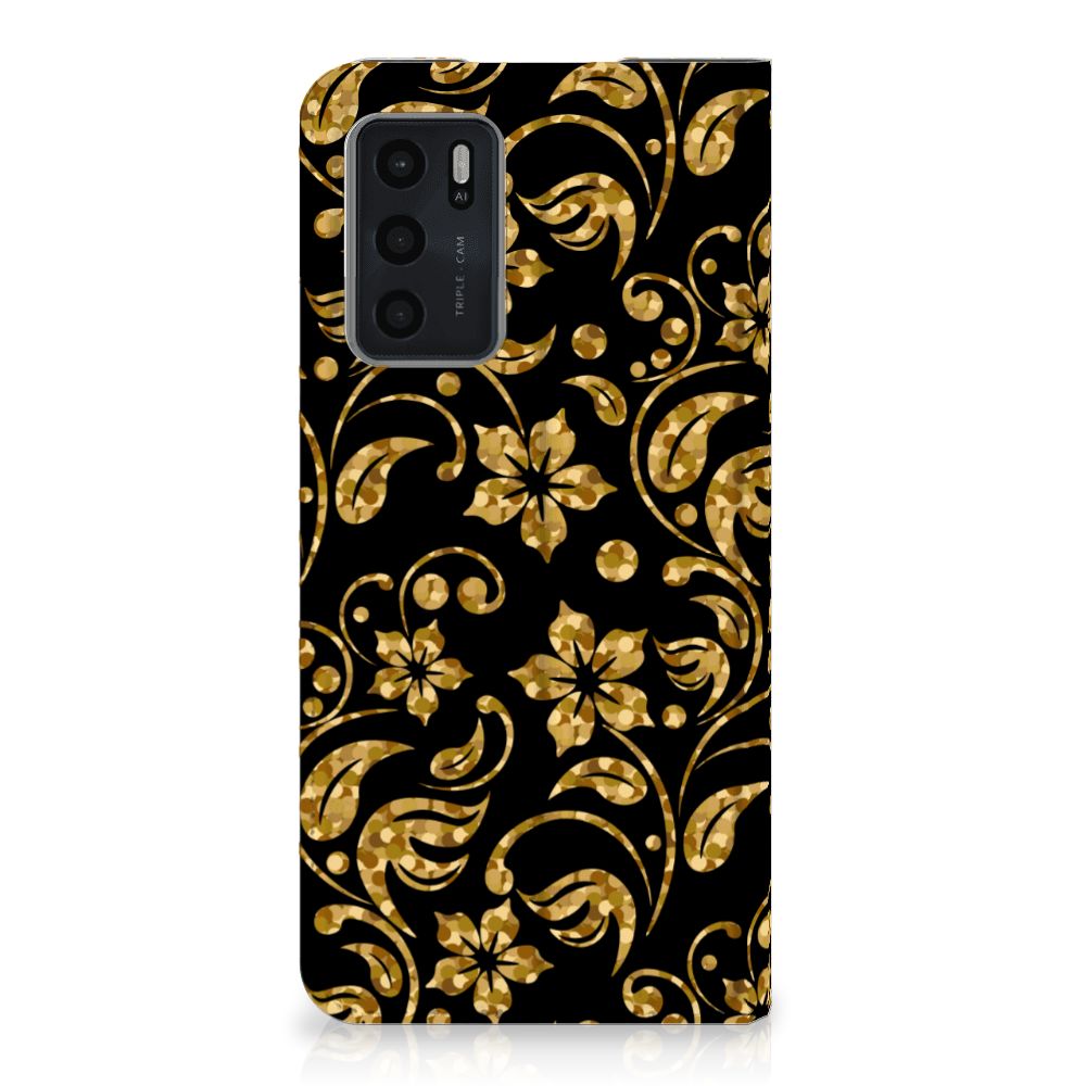 OPPO A54s | A16 | A16s Smart Cover Gouden Bloemen