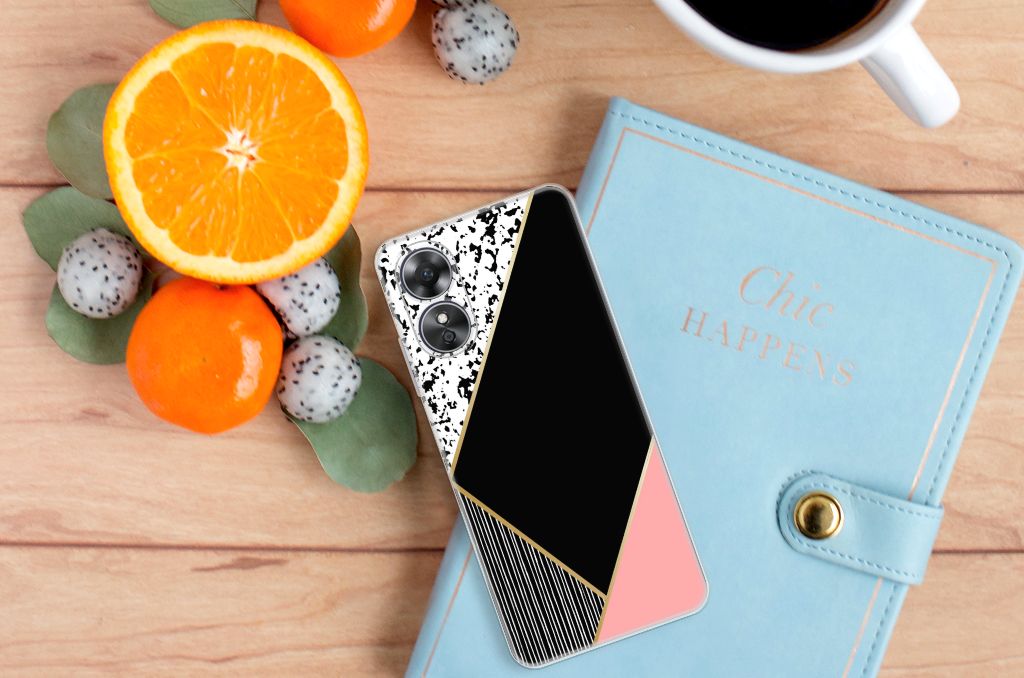 OPPO A17 TPU Hoesje Zwart Roze Vormen