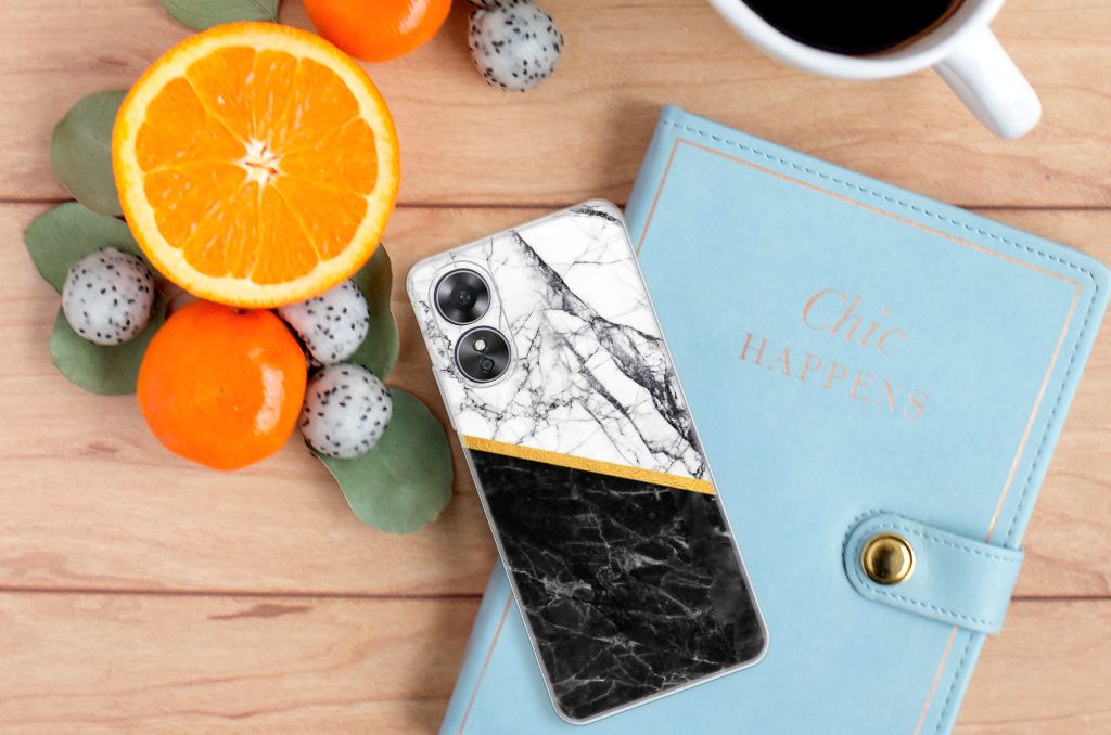 OPPO A17 TPU Siliconen Hoesje Marmer Wit Zwart - Origineel Cadeau Man