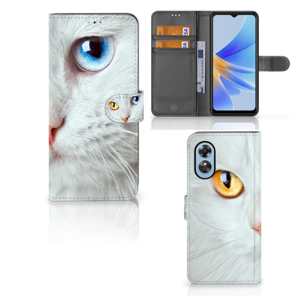 OPPO A17 Telefoonhoesje met Pasjes Witte Kat