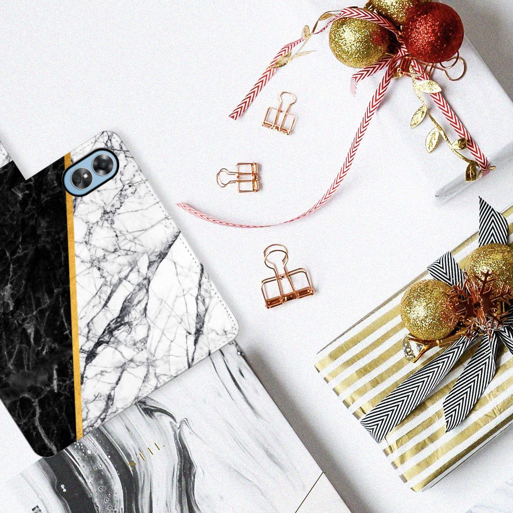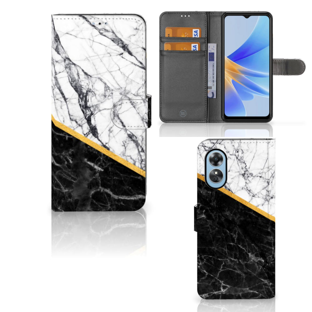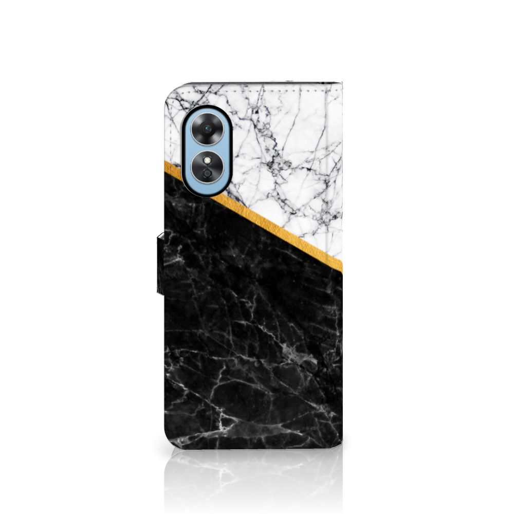 OPPO A17 Bookcase Marmer Wit Zwart - Origineel Cadeau Man