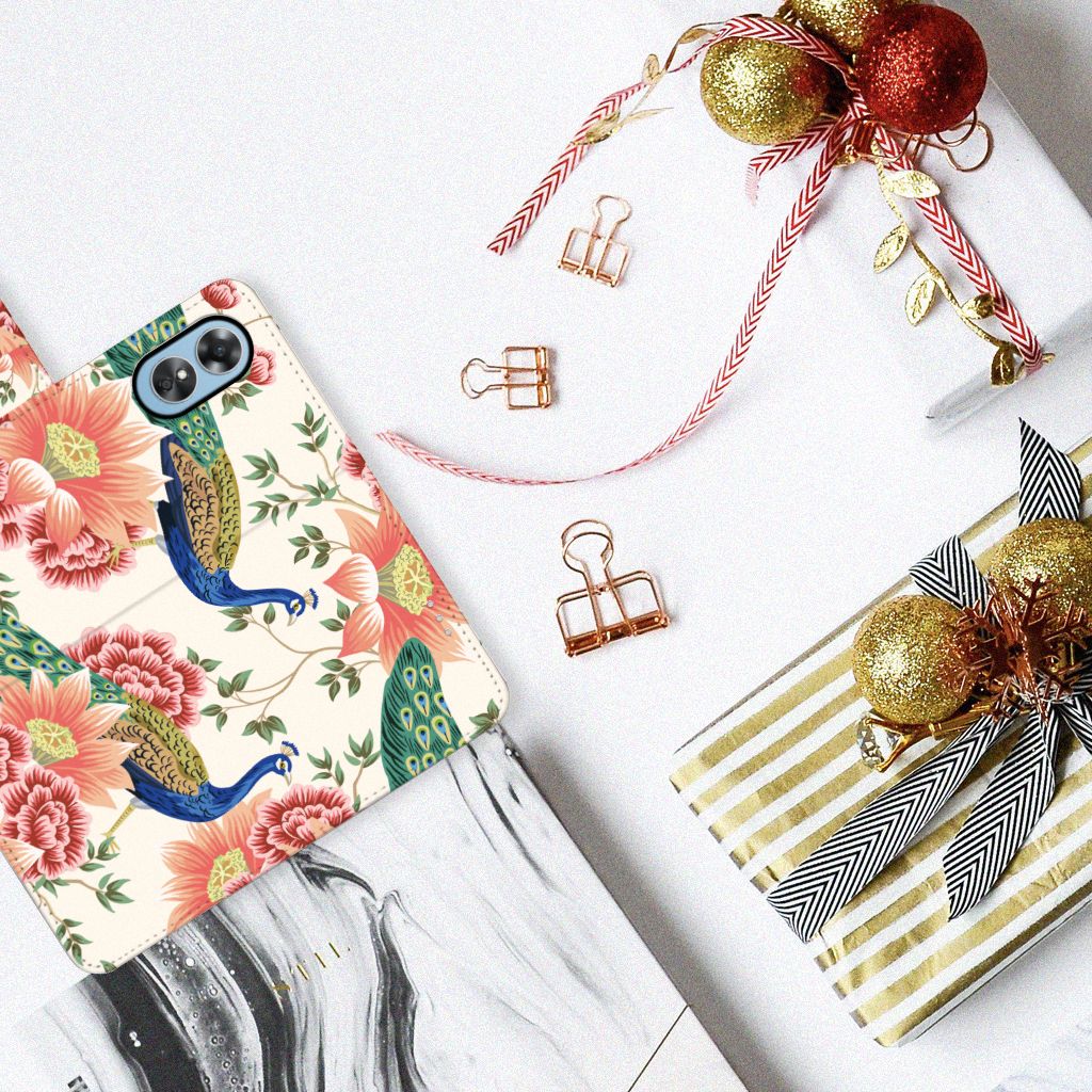 Telefoonhoesje met Pasjes voor OPPO A17 Pink Peacock