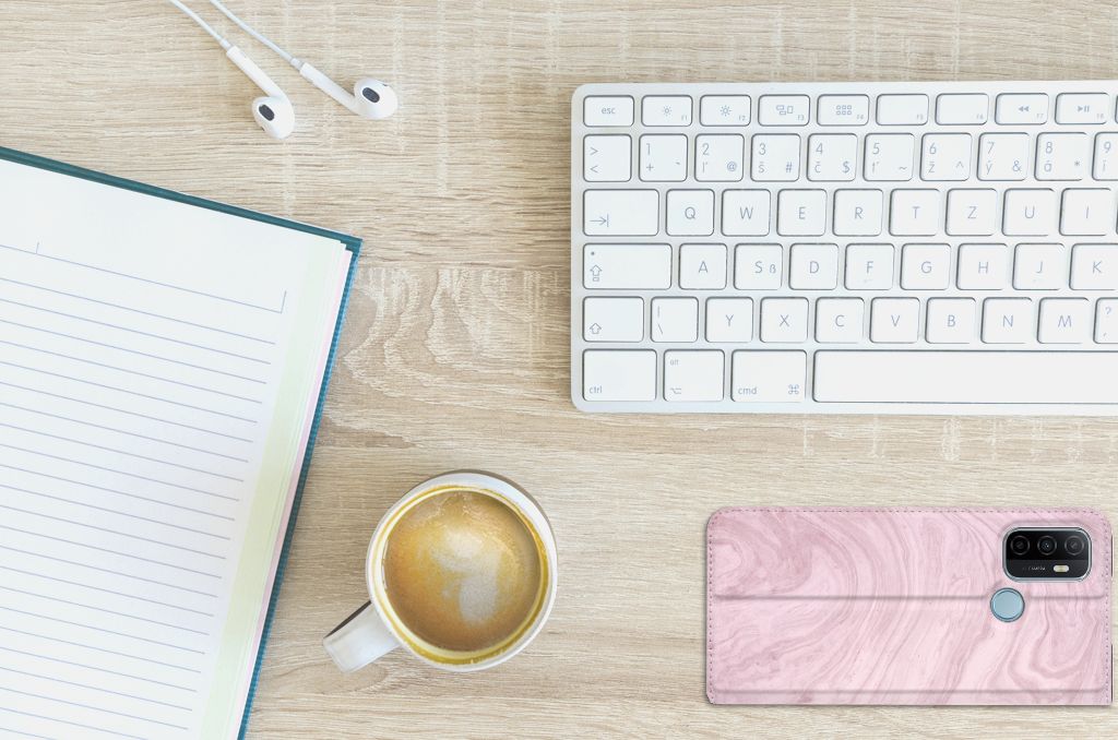 OPPO A53 | OPPO A53s Bookcase Marble Pink - Origineel Cadeau Vriendin