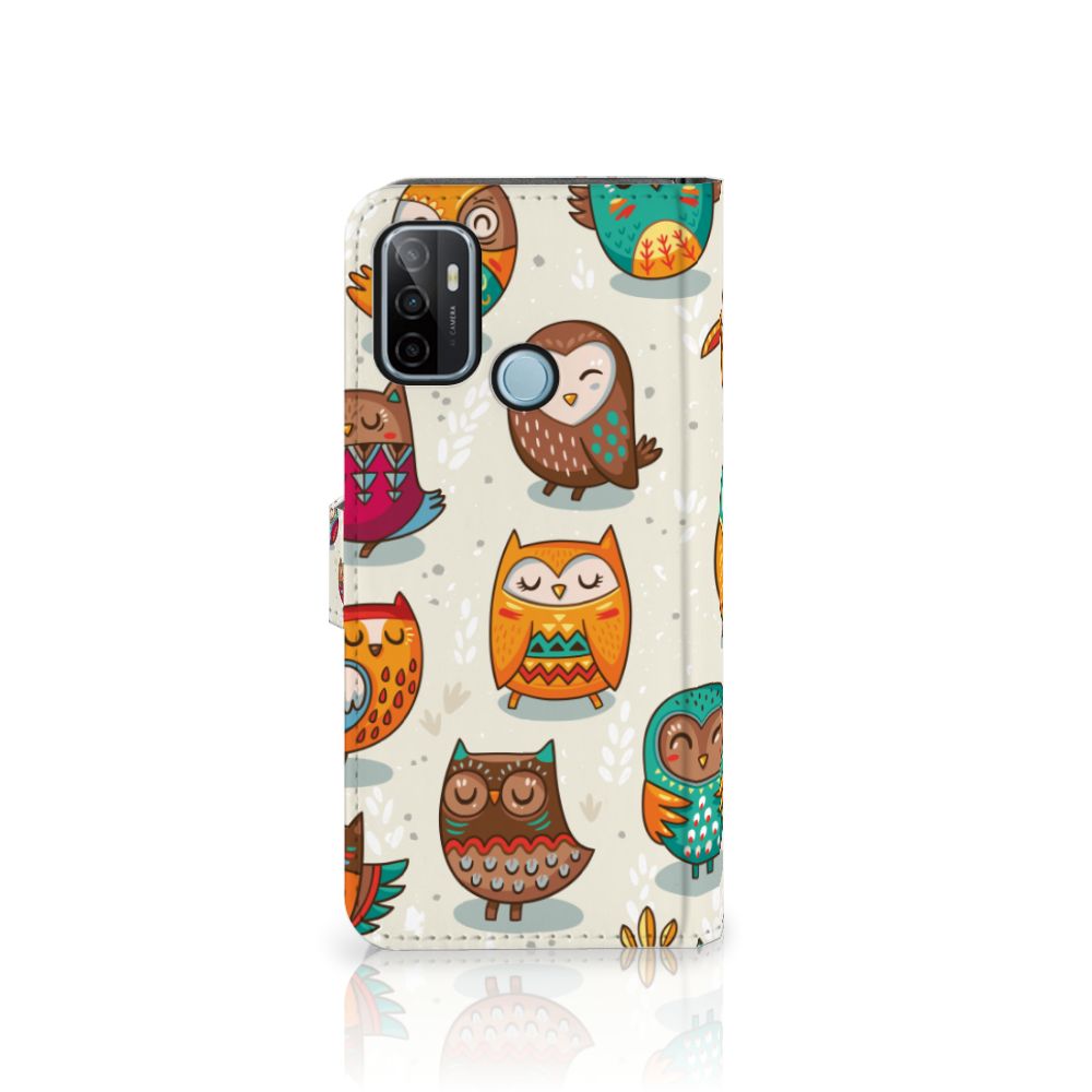 OPPO A53 | OPPO A53s Telefoonhoesje met Pasjes Vrolijke Uilen