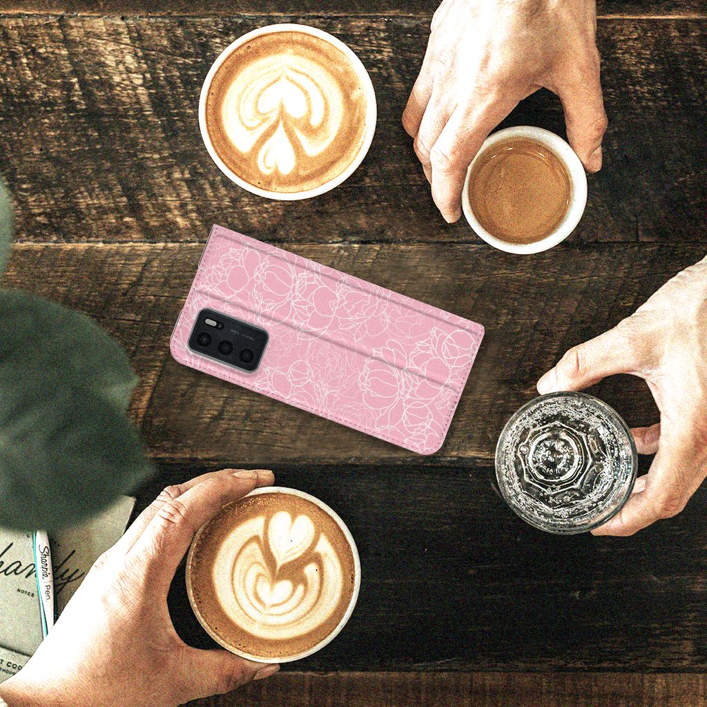 OPPO A16/A16s/A54s Hoesje Beige Flowers