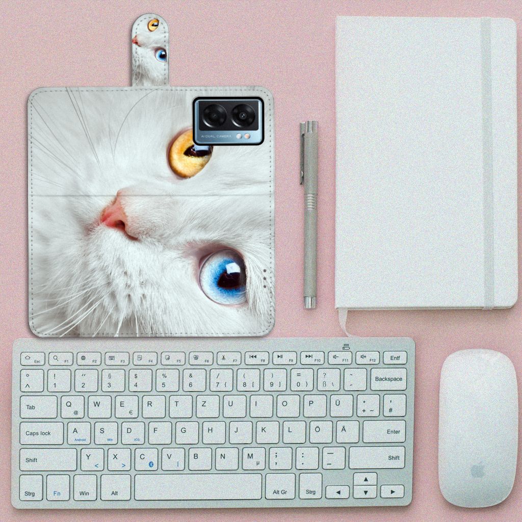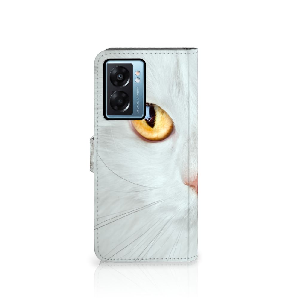 OPPO A77 5G | A57 5G Telefoonhoesje met Pasjes Witte Kat