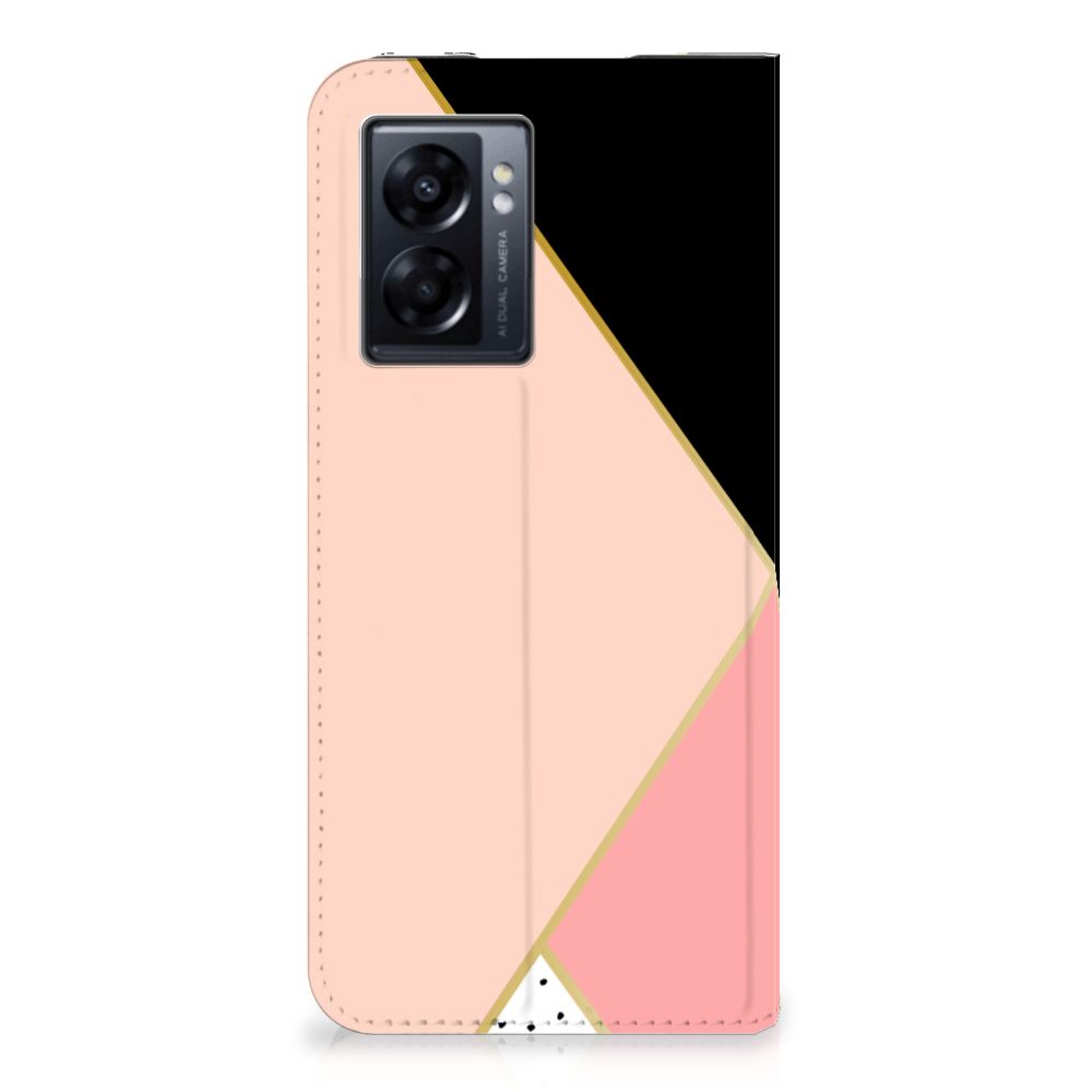 OPPO A77 5G | A57 5G Stand Case Zwart Roze Vormen
