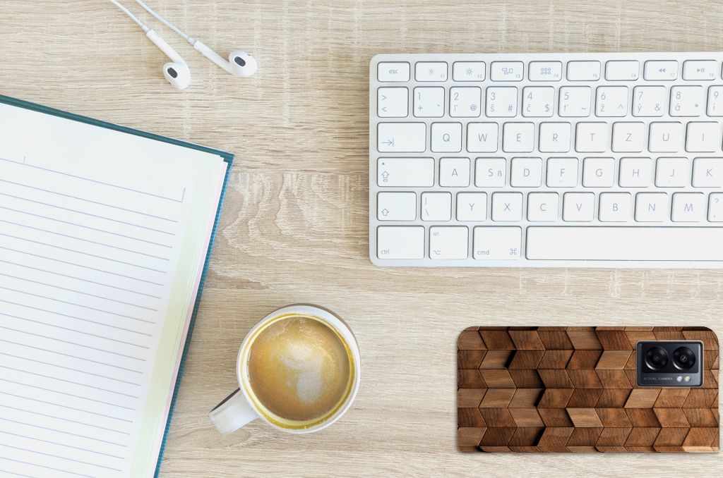 Bumper Hoesje voor OPPO A77 | A57 5G Wooden Cubes