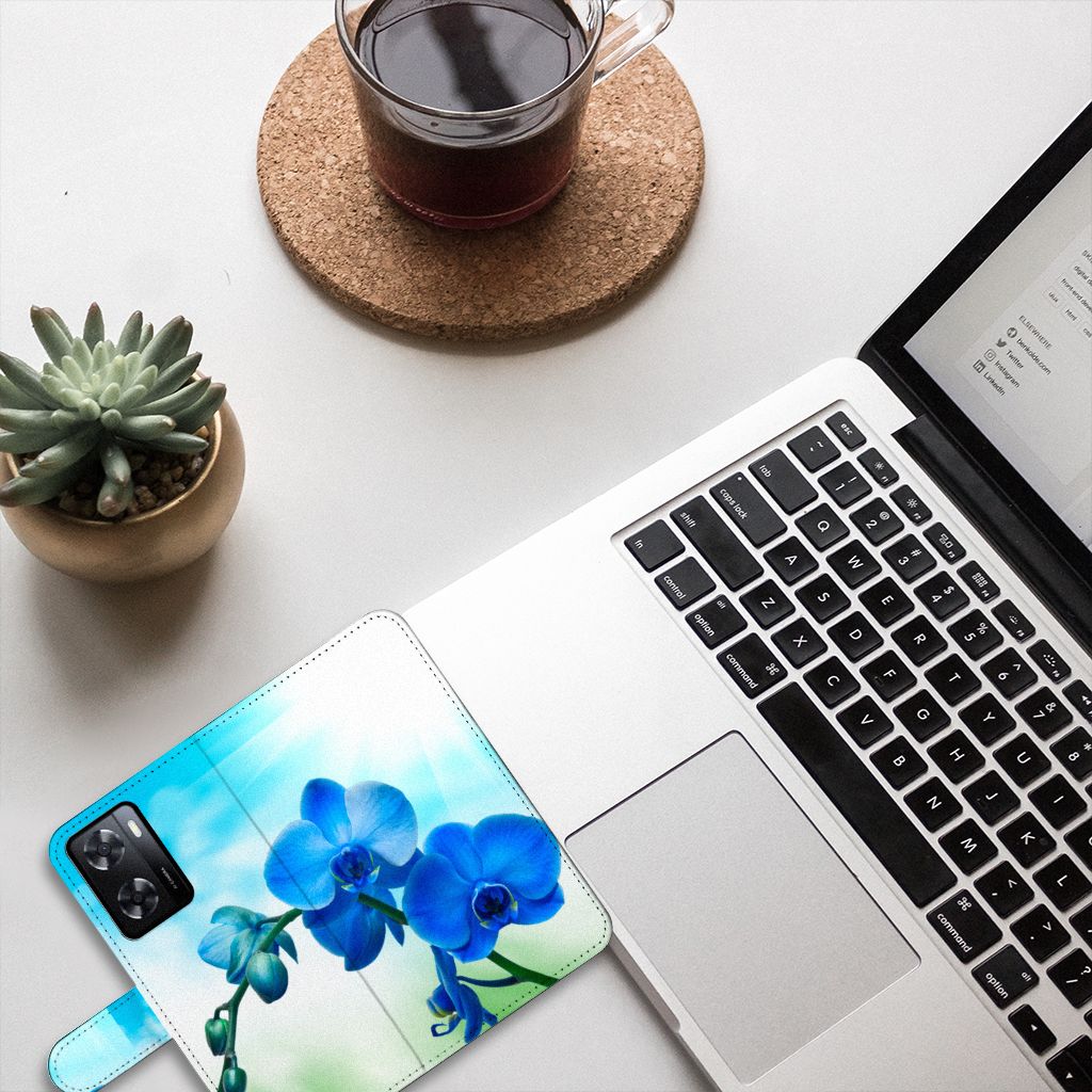 PPO A57 | A57s | A77 4G Hoesje Orchidee Blauw - Cadeau voor je Moeder