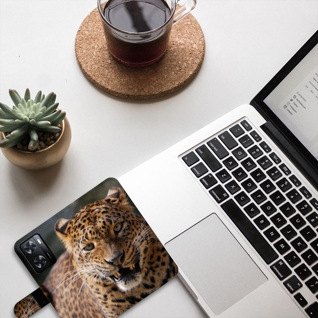 PPO A57 | A57s | A77 4G Telefoonhoesje met Pasjes Luipaard