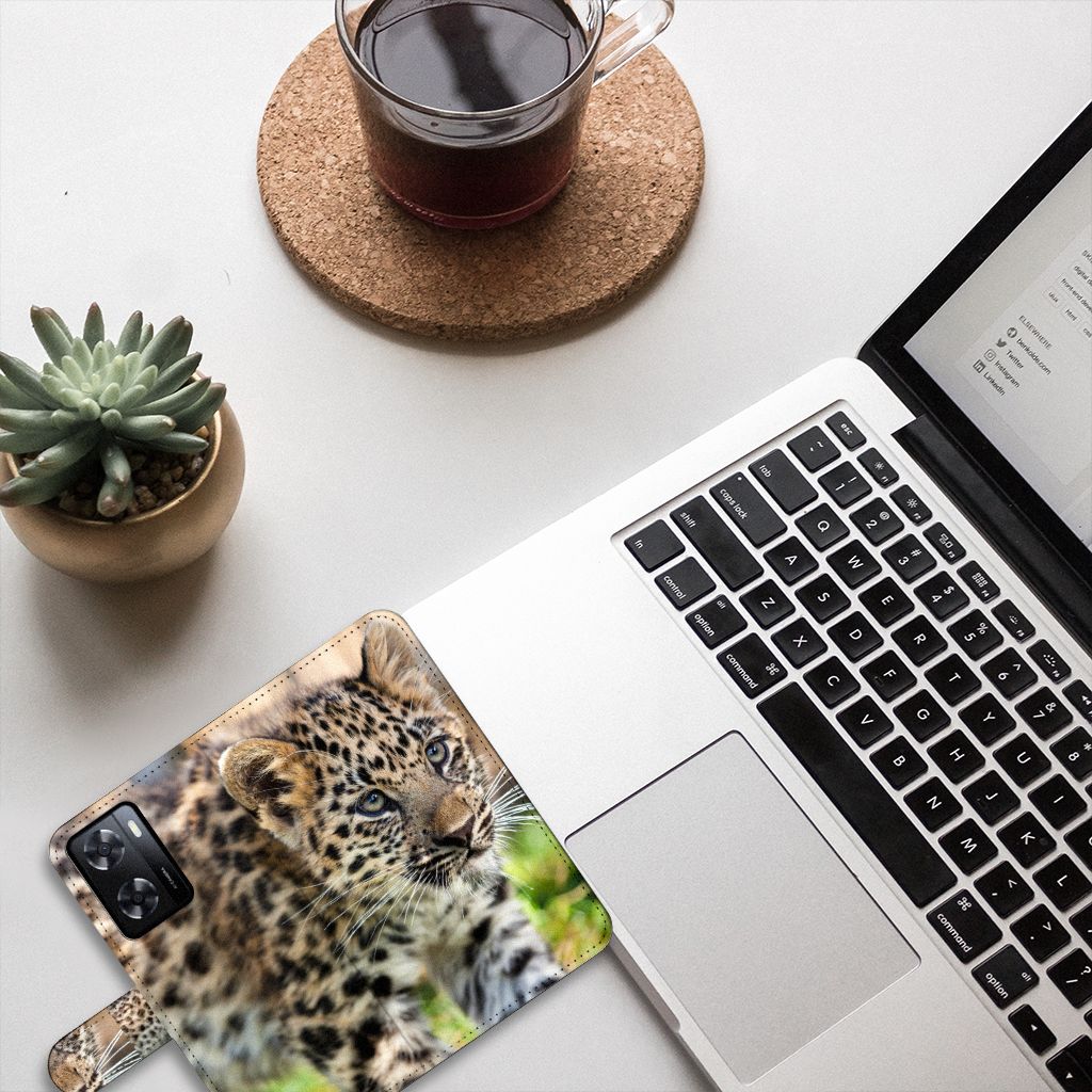 PPO A57 | A57s | A77 4G Telefoonhoesje met Pasjes Baby Luipaard