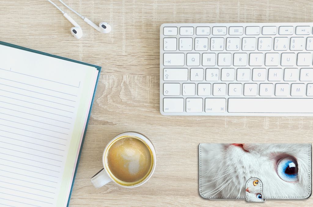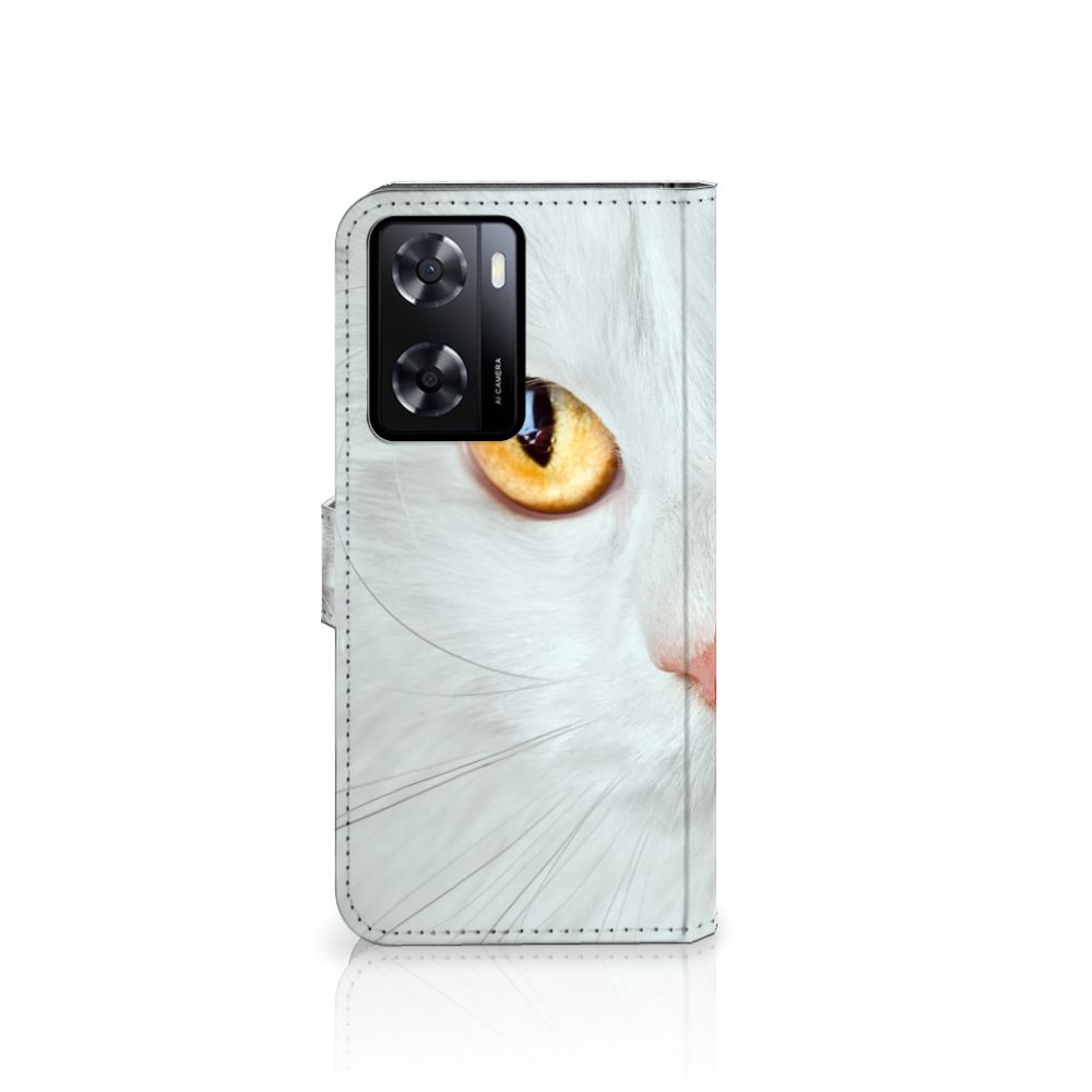 PPO A57 | A57s | A77 4G Telefoonhoesje met Pasjes Witte Kat