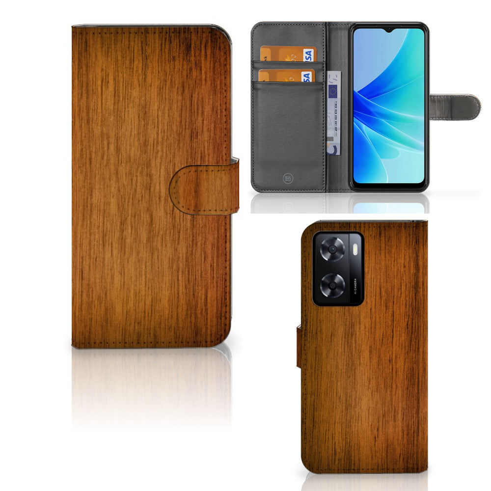 PPO A57 | A57s | A77 4G Book Style Case Donker Hout