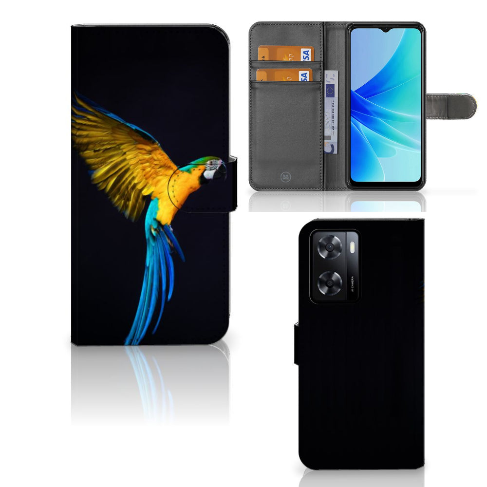 PPO A57 | A57s | A77 4G Telefoonhoesje met Pasjes Papegaai